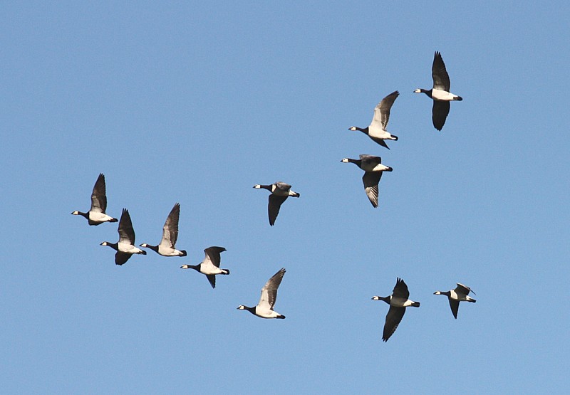 Kaikki syksyn merkit olivat ilmassa. Nämä ovat ilmeisesti valkoposkihanhia, jotka ovat