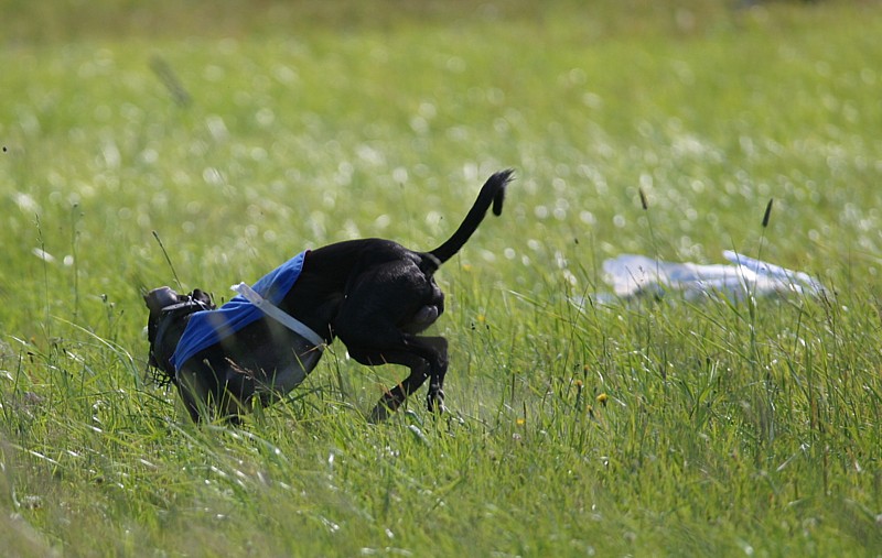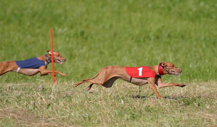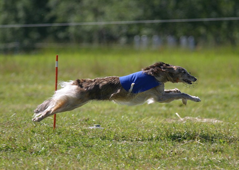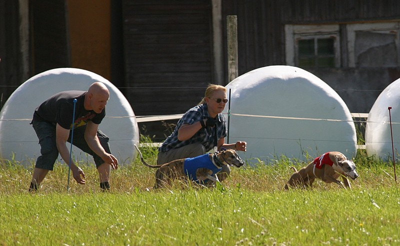 Kaksivuotias silkkivinttikoira Tatu (Bon-Zoi's Dutch Dance) juoksi ensimmäisessä kilpailussaan