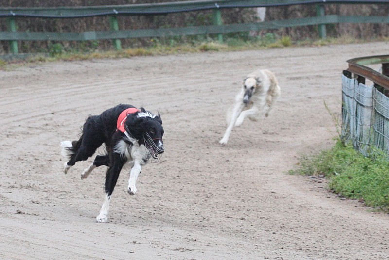 En ole oikein koskaan saanut kunnollisia kuvia ratakisoista. Koirat ovat kameran linssissä vain kiitävän hetken ja jos kaikki ei silloin ole kohdallaan niin toista mahdollisuutta ei tule. Lisäksi kuvat helposti toistavat itseään. Otin noin 950 kuvaa, ja sain mielestäni tallennettua suunnilleen kaikki lähdöt. Päivä oli ensialkuun pimeän pilvinen, ja juuri kun ajattelin etteivät valaistusolosuhteet enää voisi enempää huonontua, jostain nousi vielä sumu... Yleisesti ottaen kuvani ovat rosoisia, epätarkkoja ja vääriin paikkoihin tarkentuneita.