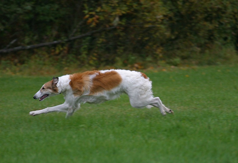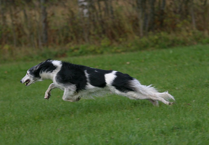 Venäjänvinttikoira Severi vauhdissa