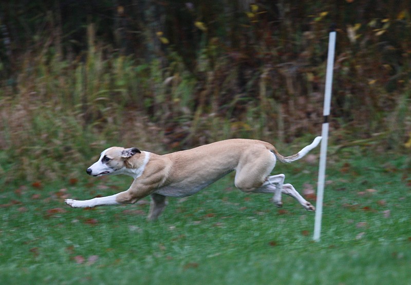 Salukit Ameena (sininen mantteli) ja Kimble. Ameena on Kimblen äiti.