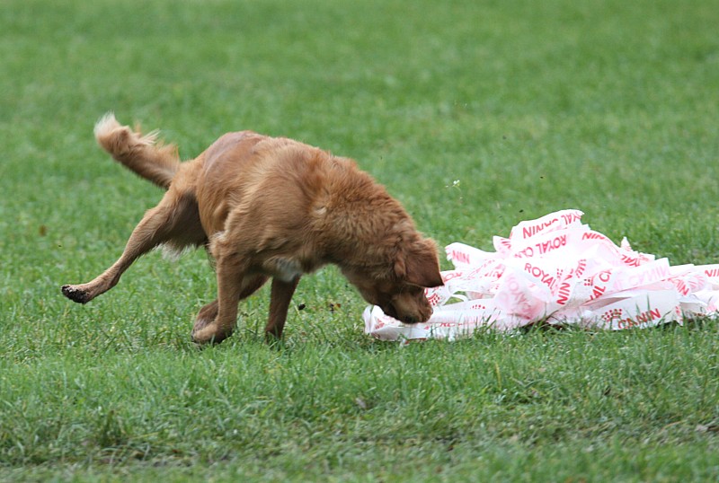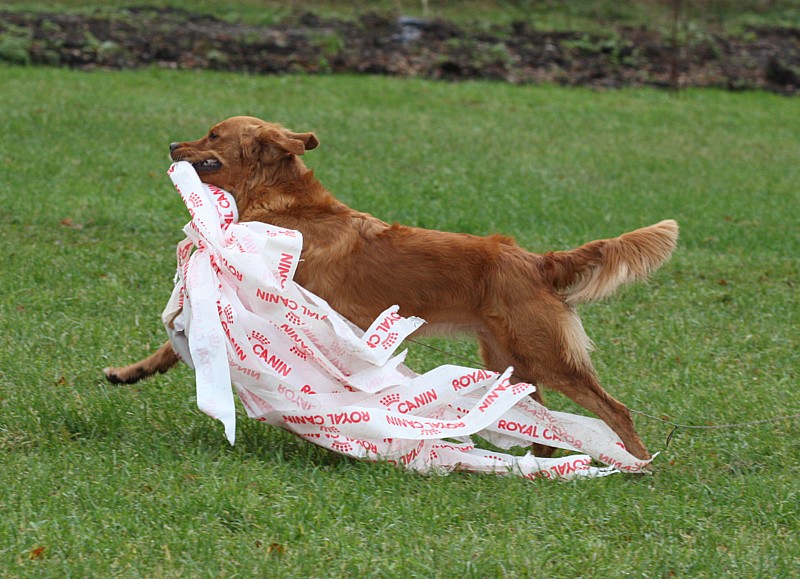 Napattu saalis viedään emännälle, kuten noutajan työnkuvaan kuuluukin. Palkkioksi Riski sai 241 pistettä ja emännän kehut.