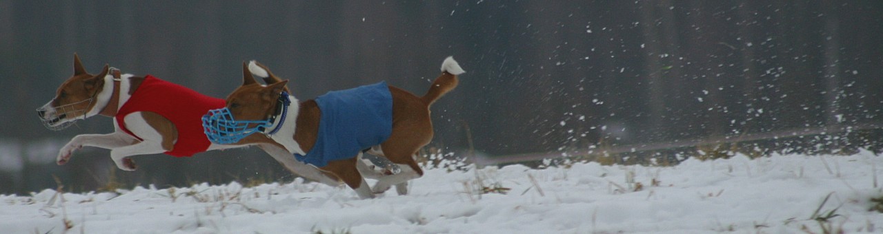 Näistä vauhdikkaista basenjeista tuo punatakkinen on ilmeisesti Amalia, Ajibu Dixie Rose, joka voitti basenjiluokan