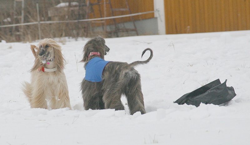 Lunta oli niin paljon, että pienillä koirilla oli vaikeuksia. Kun eksyttiin juoksu-uralta oli usein parempi jäädä odottamaan että Äiti tulee ja pelastaa.