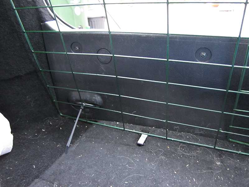 Takaluukku menee hienosti kiinnikin. Tältä näyttää koirasi näkövinkkelistä. Nippusiteiden päät on jo katkottu.